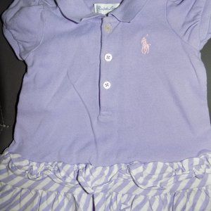 Ralph Lauren Purple/White Striped Dress Size 3 Month's Girl's EUC