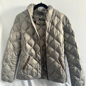 This Ralph Lauren Quilted Silver Jacket has barely been worn and is in excellent condition. It has been carefully stored in a smoke-free and pet-free home, ensuring it remains in great shape. A stylish and high-quality piece that's ready for wear!