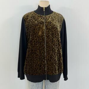 Ralph Lauren Quilted Velvet Leopard and Black Wool Full Zip Sweater Jacket 2X