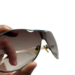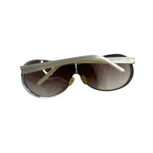 Ralph Lauren RA 7577/S Gradient Sunglasses. Features aviator frame, silver metal full-rim frame, gradient lenses, and white temple. Style RA7577. Small cracks at the bridge as shown in picture.