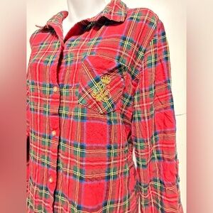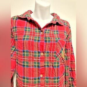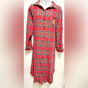 Ralph Lauren RED TARTAN PLAID Flannel MAXI Sleepshirt Nightgown POCKETS