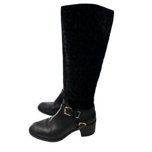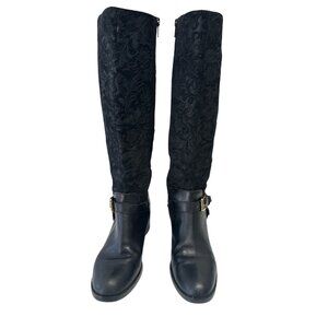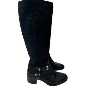 🖤 Ralph Lauren RLL “Christine” Black Leather & Embossed Velvet Riding Boots – S