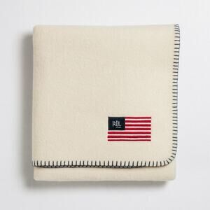 Ralph Lauren RLL Fleece Throw Blanket American Flag Logo Cream White 50x60 USA