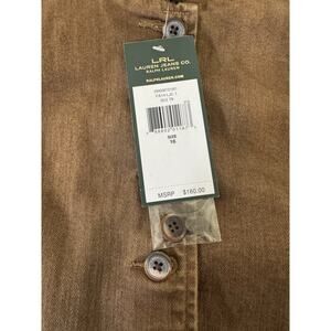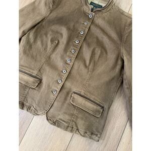 Ralph Lauren RLR Stretch Denim Jacket Camel SZ 16 Sheep Leather Trim Mandarin