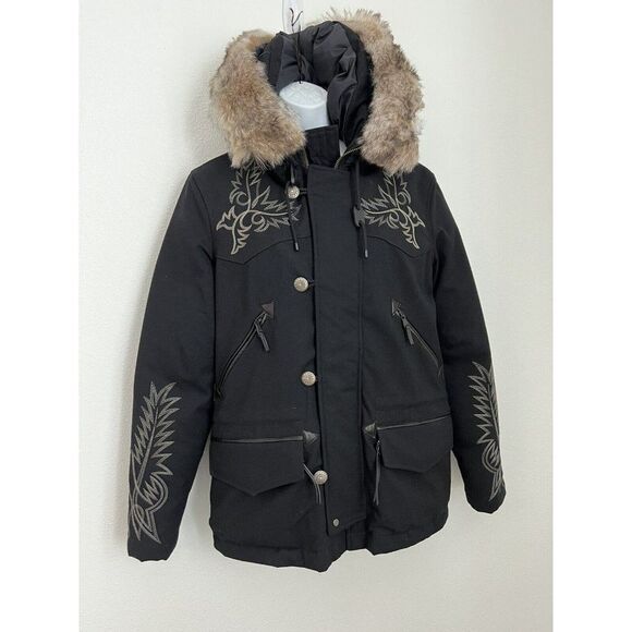Ralph Lauren Black Label Wool Southwestern Down filled coat. This coat is just stunning and the exceptional quality Ralph Lauren is known for. It’s new without tags and in pristine condition. Interior button bag is still attached and pull is paper covered. Exterior is wool and interior down filled with a fur trim. Full details on interior tag pictured. Designed as a ski coat it’s quite heavy and warm but could easily be worn as a daily coat in cooler weather. The embroidery is beautiful and has a very southwestern feel. Even the buttons have gorgeous detail. Measurements in pictures. Size medium. Non smoking home. Carefully packed and ready to ship out. I appreciate your business and strive for a five star rating. Please feel free to message me with questions. I will ship flat rate shipping to save you on shipping costs and to insure item. Open to reasonable offers but please don’t lowball. Thanks for looking!