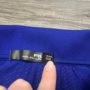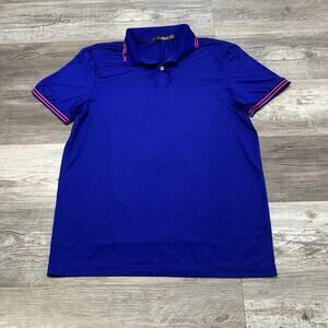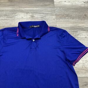 Ralph Lauren RLX Blue Pink Mens Medium Short Sleeve Performance Golfer Polo Shirt EUC