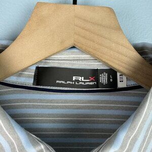 Ralph Lauren RLX Mens Golf Polo Shirt Grey Blue Striped Performance Size Large