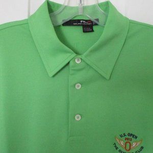 Ralph Lauren RLX Mens S/S "U.S. Open 2012 The Olympic Club" (San Francisco, CA) Golf Polo Shirt. Size Large. Armpit-to-armpit 24", Length 33". 51/47/2% Cotton/Polyester/Elastane in Lime Green. New w/o Tags, suitable for gifting.