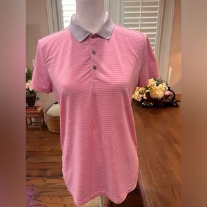 Ralph Lauren RLX Polo Shirt Classic Fit Golf Neon Pink Stripe Snap Buttons Sz M