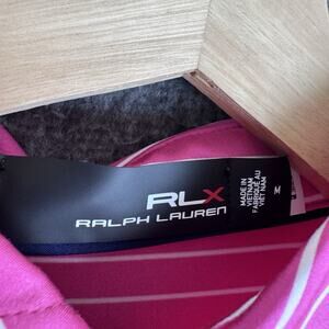 Ralph Lauren RLX Polo Shirt Mens M Pink Striped Golf Performance Athletic Active