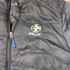 Ralph Lauren RLX Puffer Jacket Mens medium m Navy Blue Goose Down Puffer Full Zip