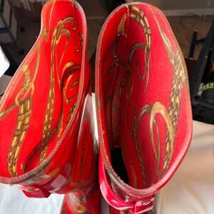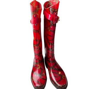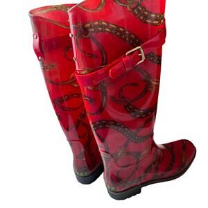 Ralph Lauren Rain Boots Wellies Rossalyn II Equestrian Red Chain Women's 6 Prep