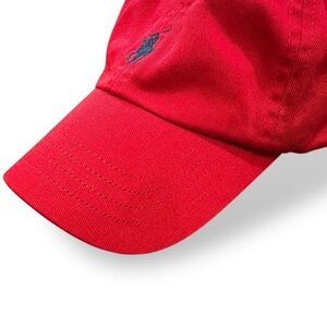 Stylish red baseball cap with iconic Ralph Lauren logo. Perfect for casual wear. Size 24-24 months. 100% cotton.