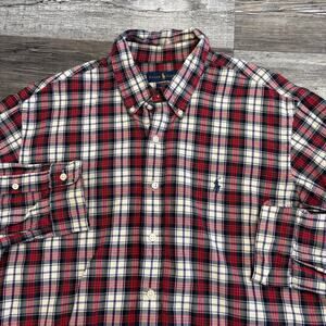 Ralph Lauren Red Green White Blue Mens XL Pony Button Down Flannel Shirt Tartan Plaid Plaid