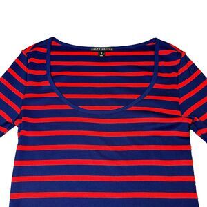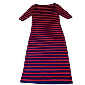 Ralph Lauren Red & Navy Striped Dress Midi Stretchy Tight Sheath Size M nautical