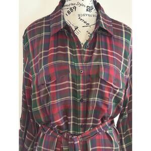Ralph Lauren Red Plaid Button Down Long Sleeve Shirt Tartan Dress w Belt size 12