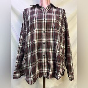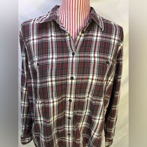 Classic plaid button up shirt from Ralph Lauren. Red, white, dark green, & black plaid pattern. Size XL, but would also make a great oversized shirt for smaller sizes. Excellent condition with no visible flaws. Please view all photos closely for reference.