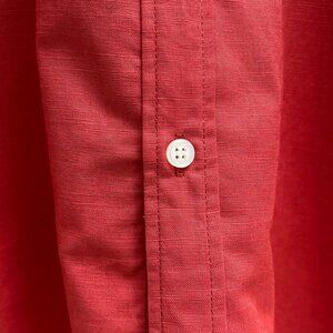 Red cotton fabric, button-down collar, black horse logo embroidery on the left chest, harmonious and vibrant color combination.