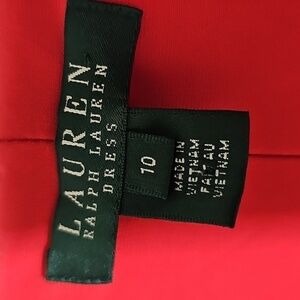 This striking red sheath dress by Ralph Lauren features a sophisticated sleeveless design and a draped cowl neckline, perfect for a night out. The form-fitting silhouette and vibrant color make it a standout piece, while the soft, stretchy fabric ensures comfort and elegance. size 10 pit to pit flat measurement is 19". The top to bottom length is 42". Consider making a bundle and get an even better offer and save on shipping