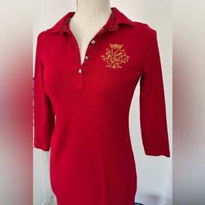 Ralph Lauren Red Sheath Dress with Polo Collar and Cuffed Sleeves