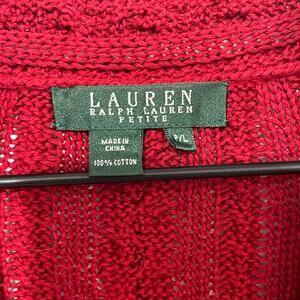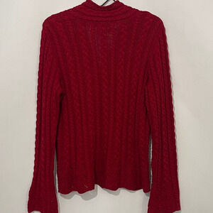 Ralph Lauren Red V-Neck Cable Knit Sweater Womens Petite Large PL Bell Sleeves