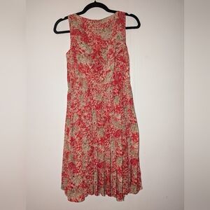 Chic floral dress in vibrant red and tan. Ideal for versatile styling.