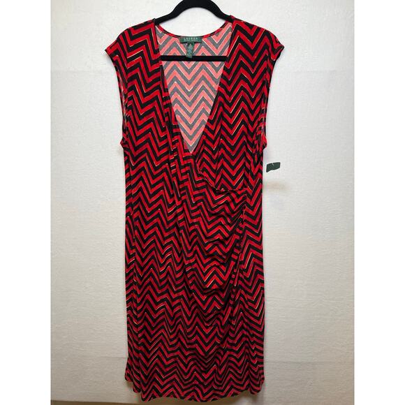 Ralph Lauren Red/Black Faux Wrap Dress, Size 2X