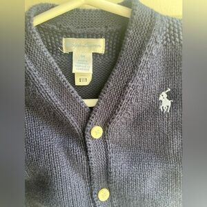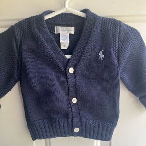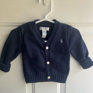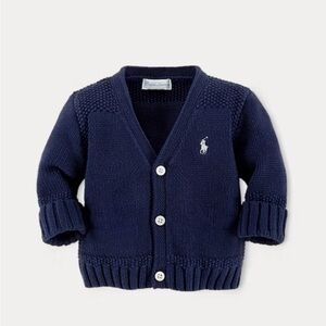 Ralph Lauren Refined Navy Baby Boy Knit Cotton V-Neck Cardigan Size 6M