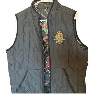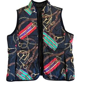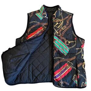 Ralph Lauren Reversible Equestrian Print Quilted Vest - Black & Gold Chain M