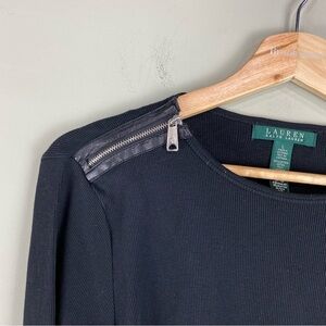 Ralph Lauren Ribbed Leather Zipper Shoulders Long Sleeve Pull Over Sweater Large
