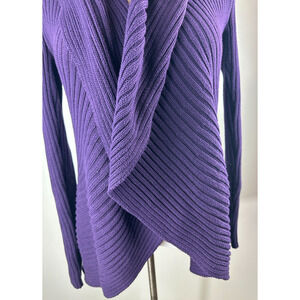 Ralph Lauren Ribbed Open Front Drape Shawl Cardigan Purple Women's Size L/XL