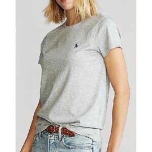 Ralph Lauren Round T Shirt Top Tee 100% Cotton Heather Gray Women L Quiet Luxury
