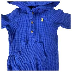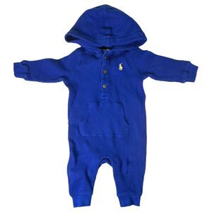 Ralph Lauren Royal Blue Waffleknit Romper One Piece Hooded Size 3 Months