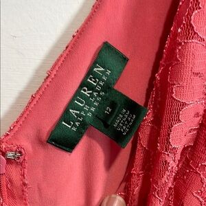 This elegant Ralph Lauren mini dress showcases a vibrant orange and pink palette, ideal for a cocktail night out. The sleeveless sheath design is accentuated by a chic ruched wrap detail and a sophisticated V-neckline, offering a flattering silhouette. Its eye-catching colors and stylish features make it a standout choice for any special occasion.