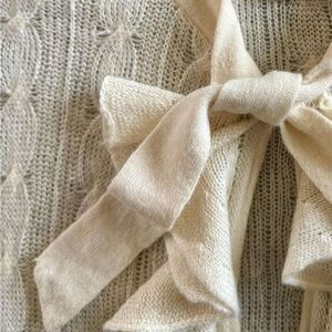 Ralph Lauren Ruffle Creamy Tie Neck Sheer Cable Knit Linen Alpaca S/S Sweater