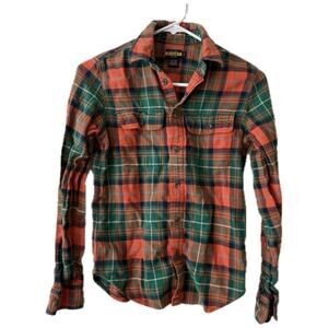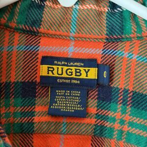 Ralph Lauren Rugby 100% Cotton Plaid Flannel Button Up Shirt Orange/Green- SZ: 0