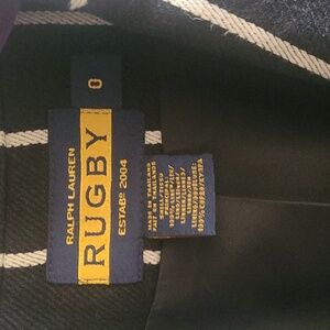 Ralph Lauren Rugby B&W Stripes Crop Jacket, Sz 0. Beautiful cut with back ruffled longer hem. Good pre-loved condition, no visible flaws