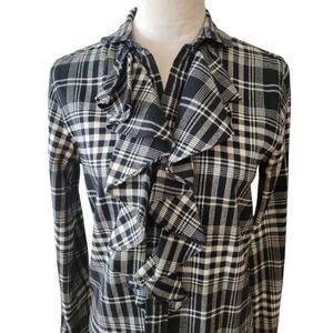 Ralph Lauren Rugby Black Plaid Flannel Ruffled Dress Size Small
