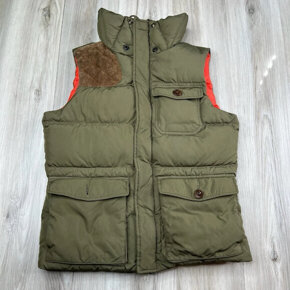 Ralph Lauren Rugby Down Vest Calf Suede Patch Army Green Men’s Size S Small
