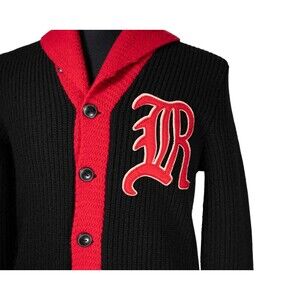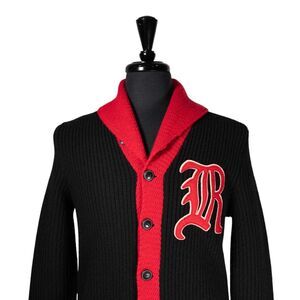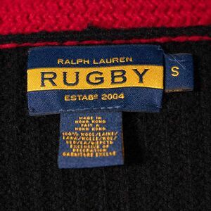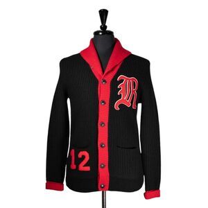 Ralph Lauren Rugby Mens Cardigan Sweater Small Black Red Wool Shawl Collar Patch