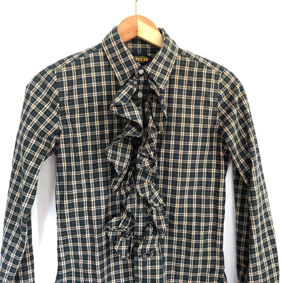Adorable green plaid ruffled shirt - perfect condition!