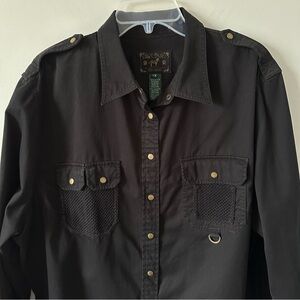 Ralph Lauren Safari Outfitters Black Snap Button Up Shirt Women's 2X Vintage