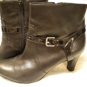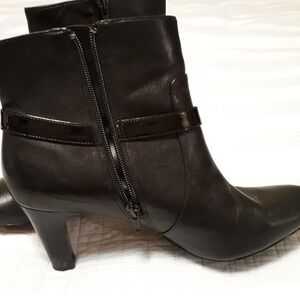 Ralph Lauren Saida Black Leather Zip Booties Sz 9.5 B 3" Heels