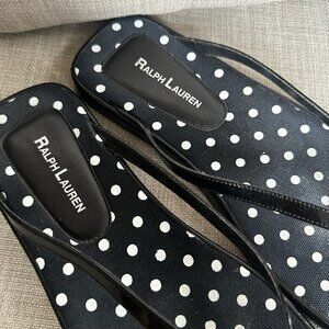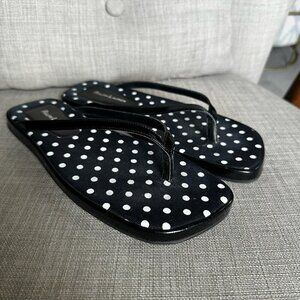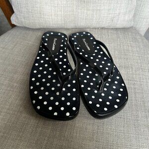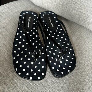 Ralph Lauren Sandals Womens 7 Patent Leather Black Polka Dot Preppy Flip Flops