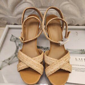 Ralph Lauren "Sasha" Raffia Platform Sandals. NIB. Size Various
