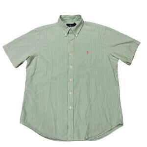 Ralph Lauren Seer Sucker Shirt Mens Size Large Green White Striped Short Sleeve