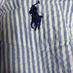 Ralph Lauren Seersucker Button Up Shirt Men's XLT Blue White Stripes GUC