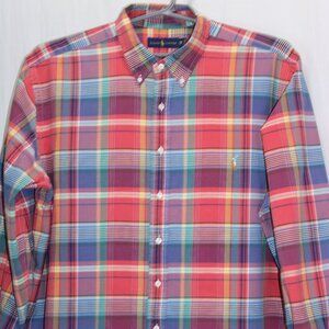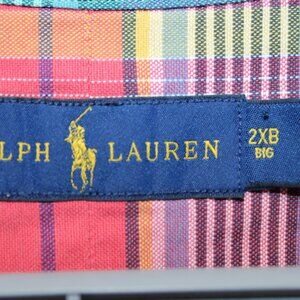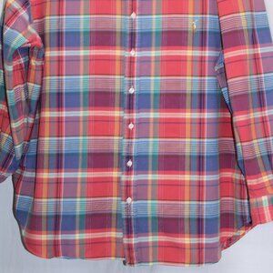 Ralph Lauren Shirt 2XB Big Red Green Purple Plaid Flesh Pony Cotton Long Sleeve