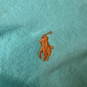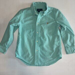 Ralph Lauren Shirt Boys Size 5 Long Sleeve Button Down Turquoise W/ Orange Logo