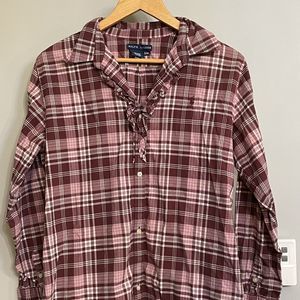 Ralph Lauren Shirt Dress Plaid Button Up Roll Tab 3/4 Sleeve Womens Small EUC